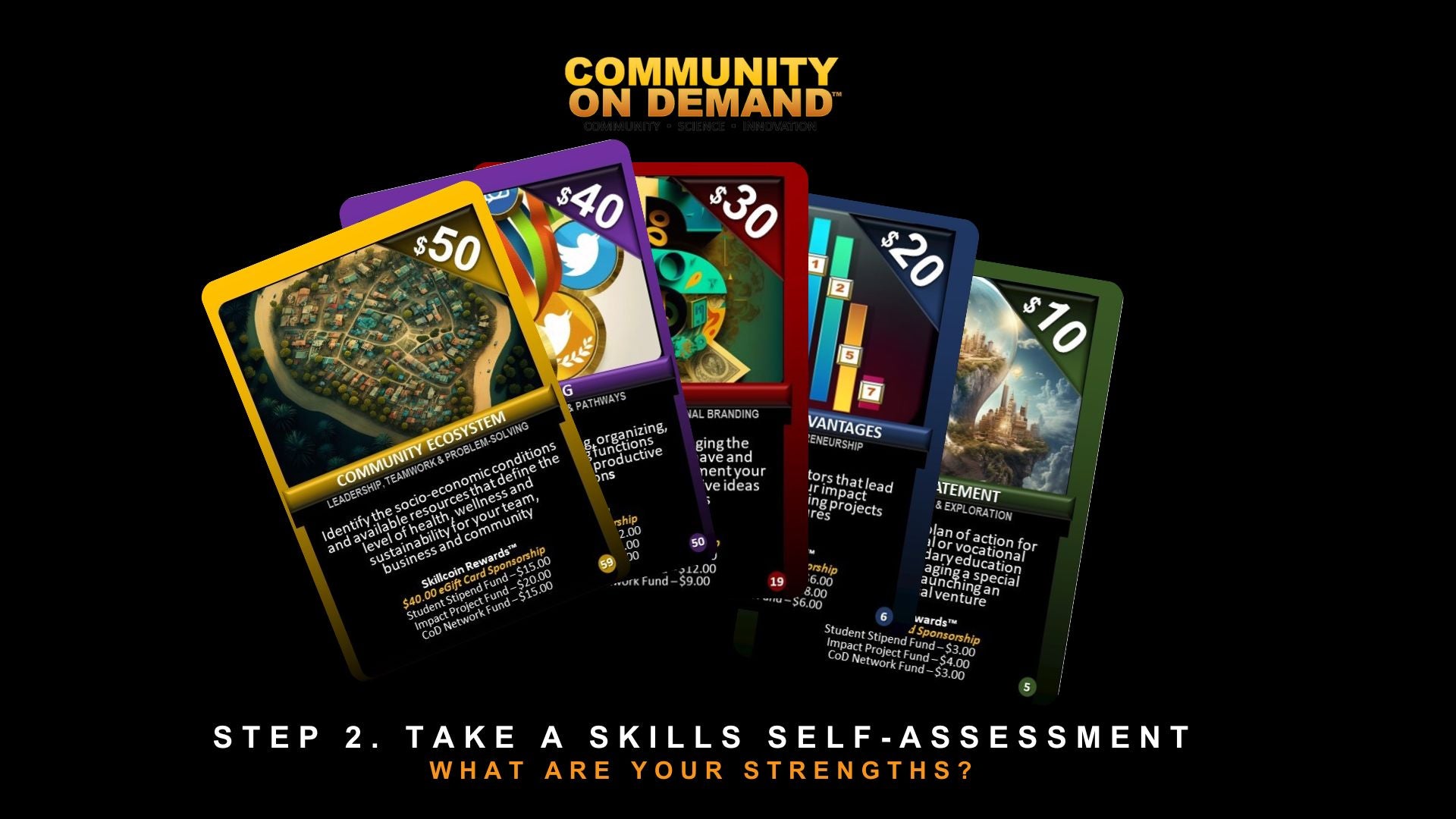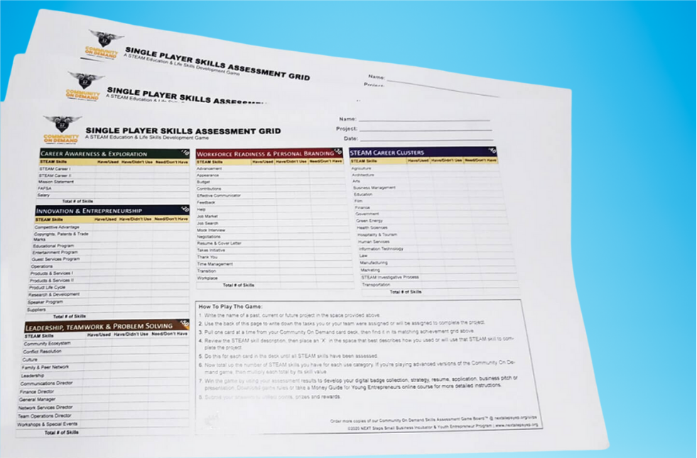 The Money Guide is the "official" textbook for the Community On Demand card game! It provides eight critical lessons that take you through the new business development process. When done, you can use your Money Guide as a business plan!