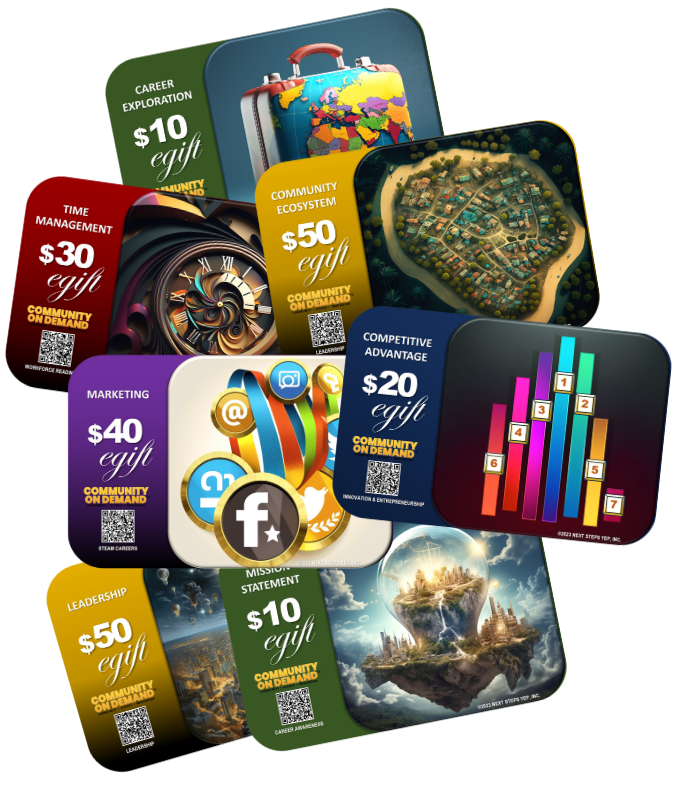 $30.00 SponsorshipWorkforce Readiness & Personal Branding eGift cards focus on the skills you use to develop project management and life readiness skills for college, career, business and community re-investment.