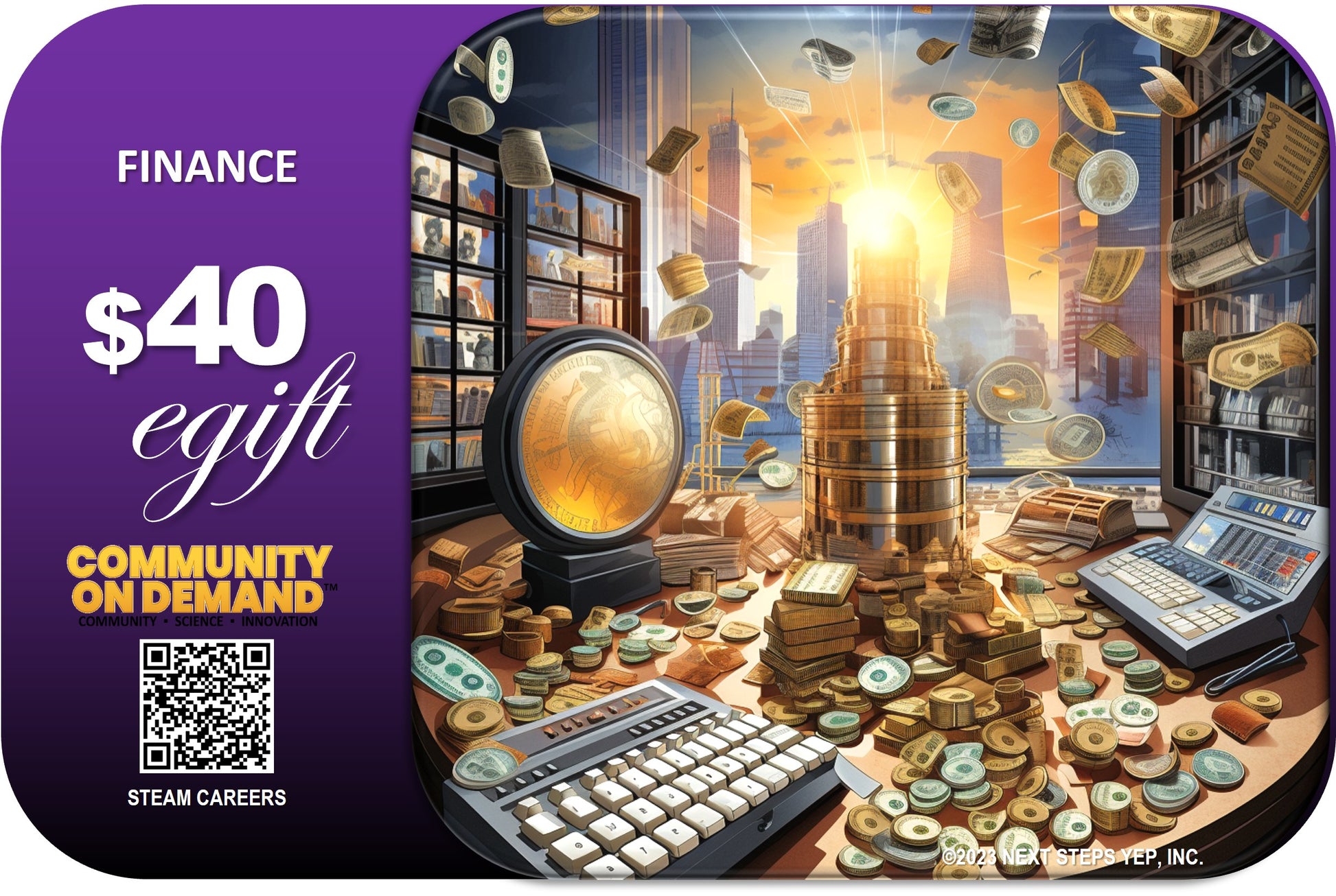 Invest in this egift card to provide learners with opportunities to explore careers in financial and investment planning, banking, insurance, and business financial management.