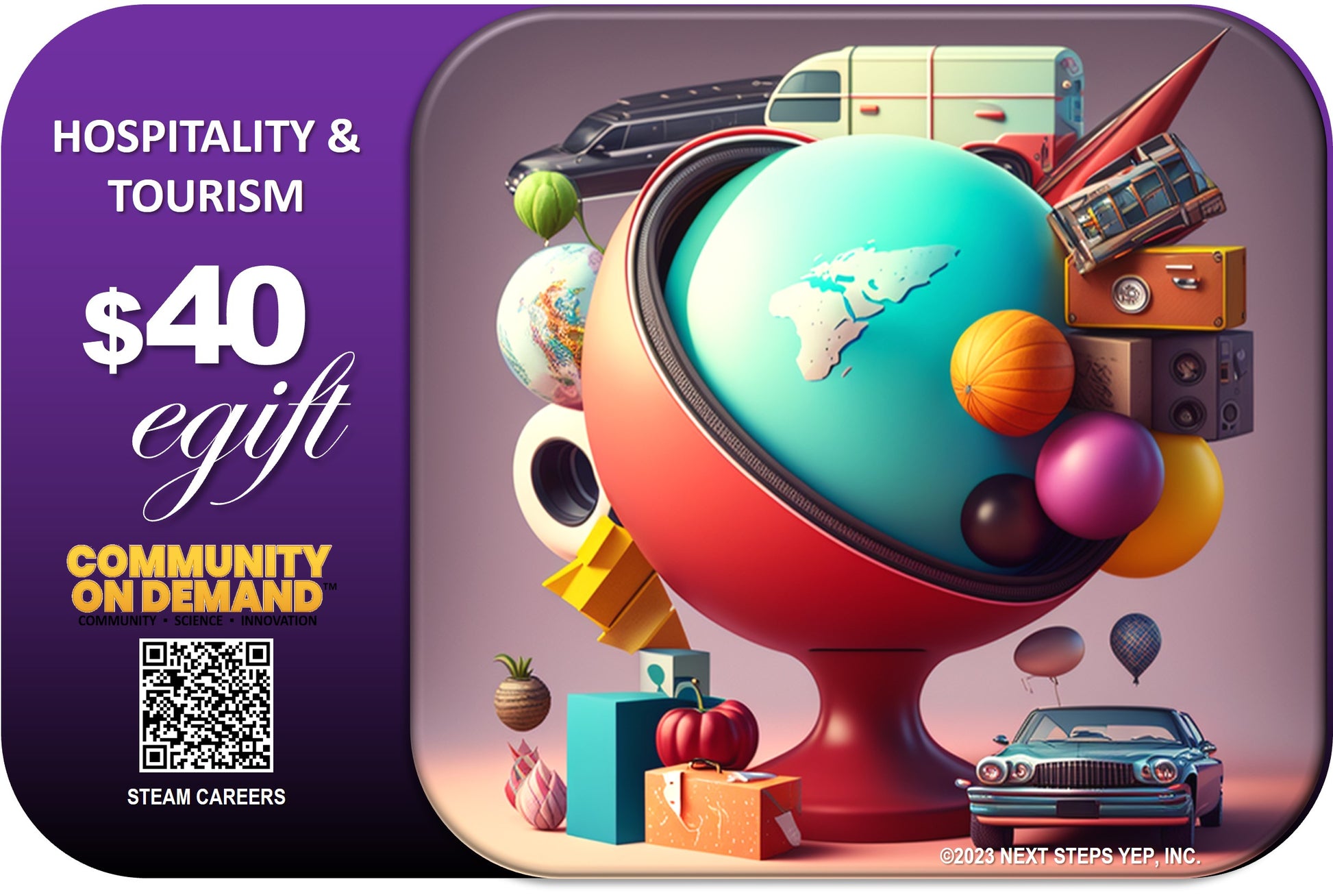 Invest in this egift card to provide learners with opportunities to explore careers in the management, marketing and operations of restaurants and other lodging, attractions, travel and recreation events.