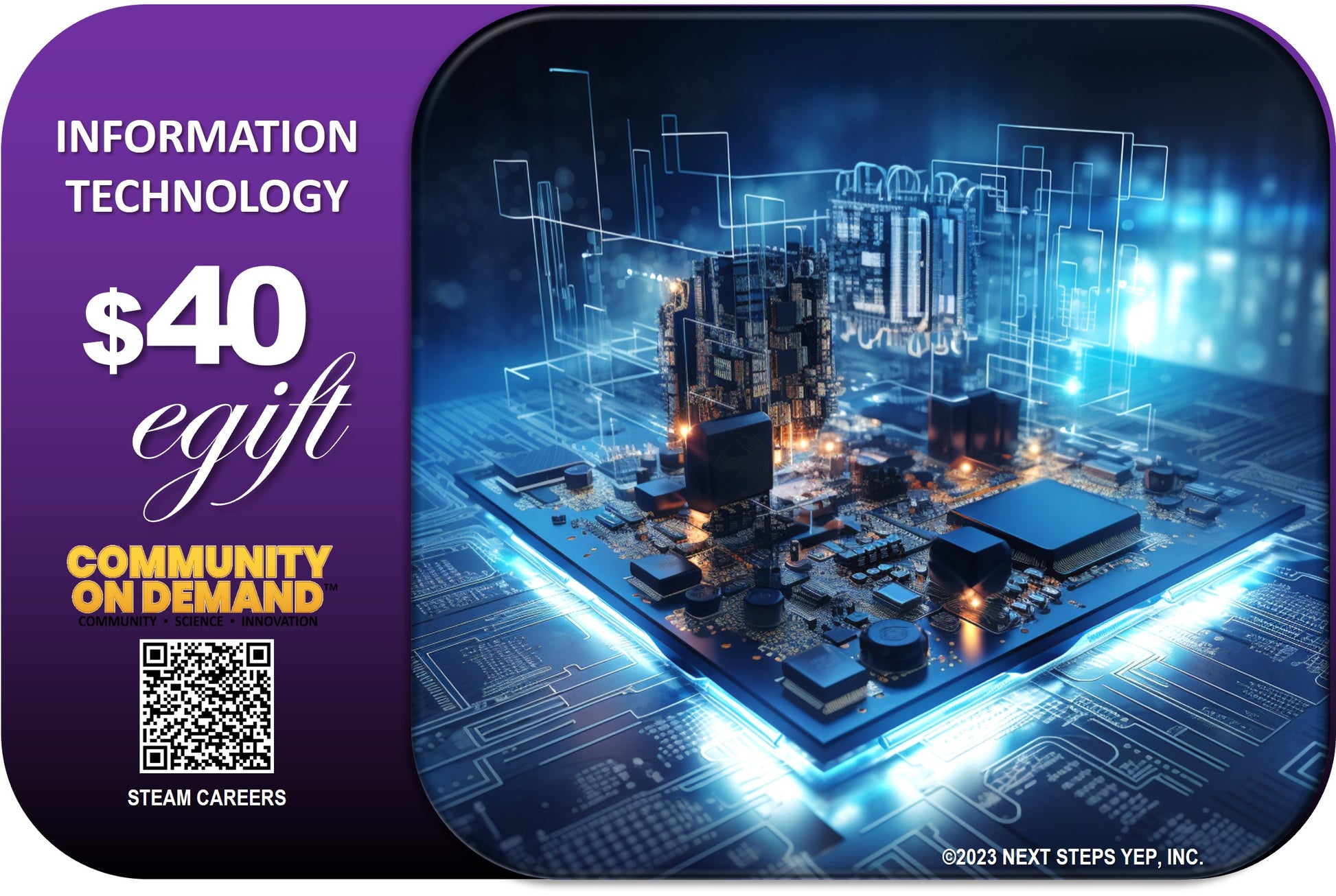 Invest in this egift card to provide learners with opportunities to explore careers in the design, development and management of hardware, software, multimedia and systems integration services.