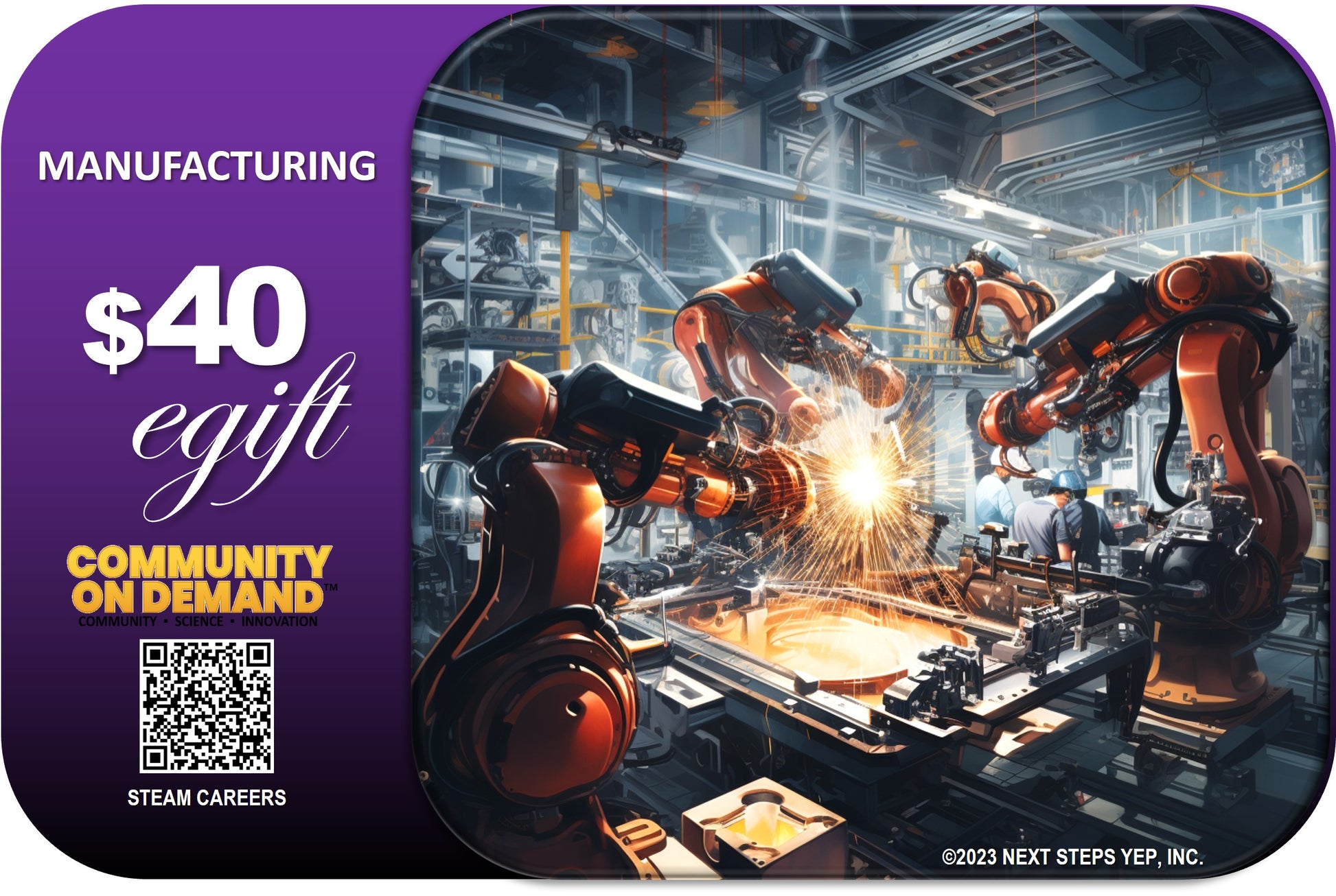 Invest in this egift card to provide learners with opportunities to explore careers in planning, managing and performing the processing of materials into intermediate or final products.
