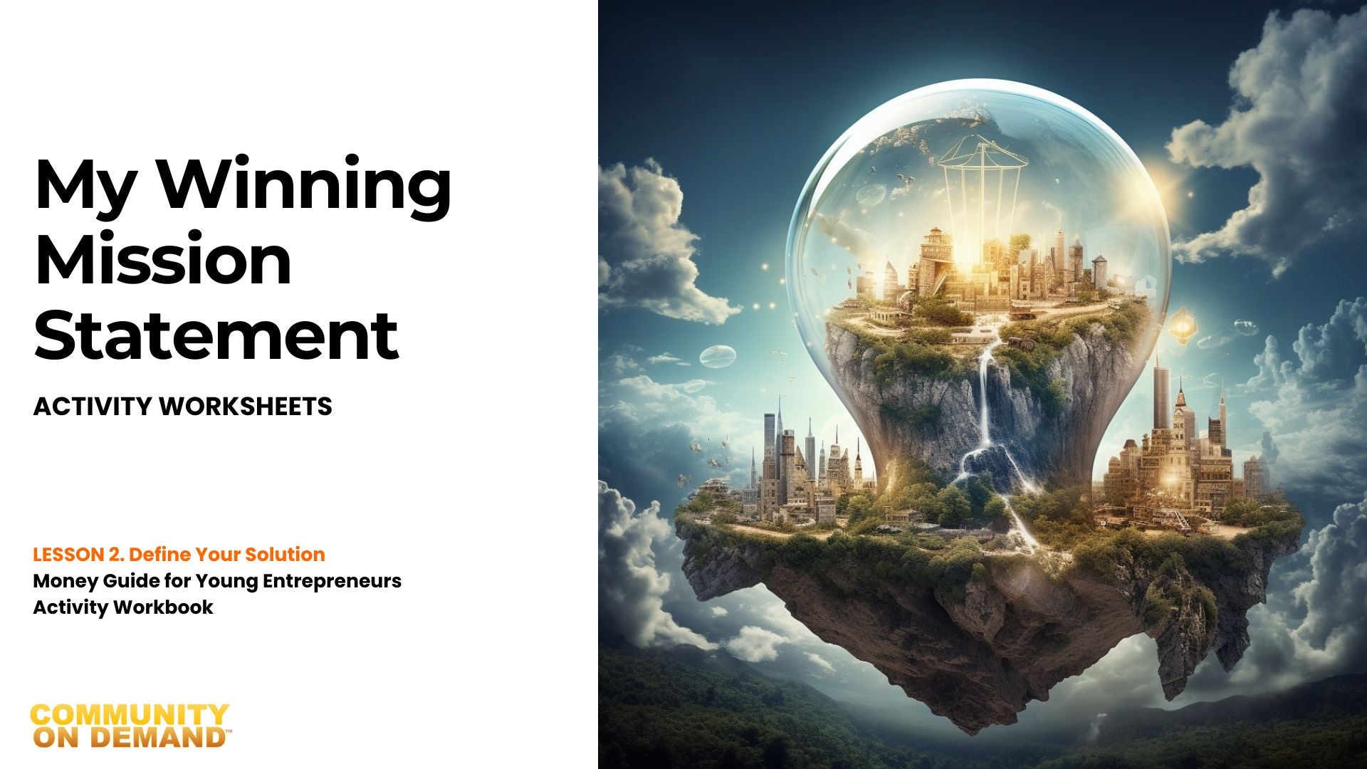 Use the My Winning Mission Statement Worksheet to create a personal or professional winning mission statement (aka “elevator pitch”) for your innovative ideas, service-learning projects and social ventures.